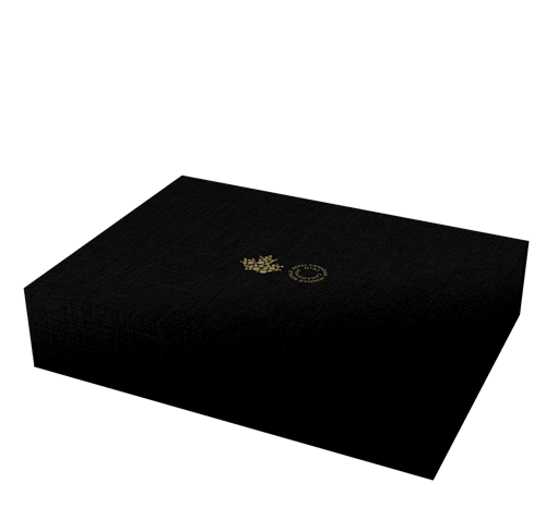 Les pièces sont encapsulées et présentées dans un boîtier illustré orné du logo de la Monnaie royale canadienne. Le boîtier est assorti d’un fourreau protecteur.