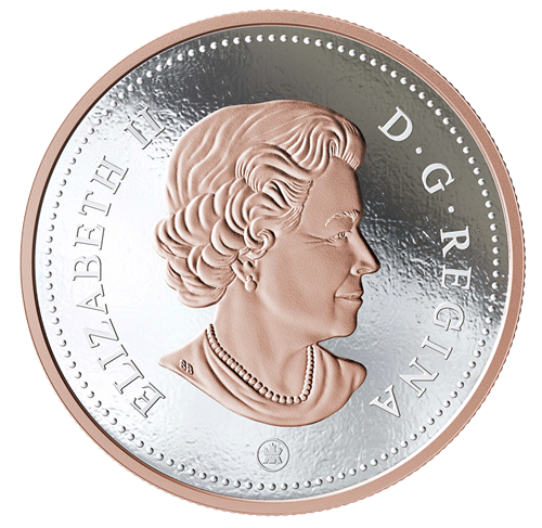 Pièce de 5 oz en argent pur avec placage d'or rose - Série Pièces de grande taille : Pièce de 10 cents