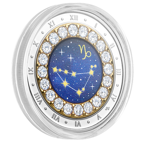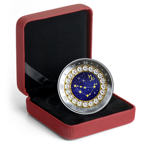 Pièce en argent pur rehaussée de cristaux Swarovski (MD) - Signes du zodiaque : Capricorne