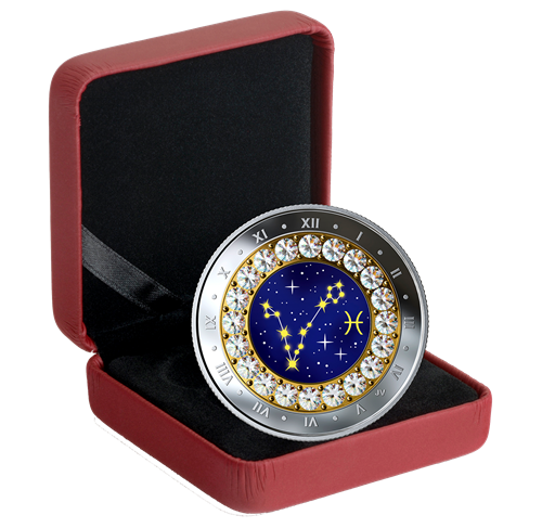 Pièce en argent pur rehaussée de cristaux Swarovski (MD) - Signes du zodiaque : Poissons