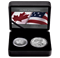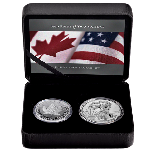 Pour souligner l'esprit d'indépendance de leur pays et le partenariat de longue date qui les unit, la Monnaie royale canadienne et la United States Mint sont fières de présenter conjointement l'ensemble de deuxpièces édition limitée 2019 – Fiers emblèmes de deux pays. D'une facture impeccable, cet ensemble spécial célèbre l'identité nationale du Canada et des États-Unis avec despièces de monnaie qui mettent à l'honneur la richesse de leur histoire, leur fierté et leurs étroites relations comme voisins et partenaires. Ce tout premier ensemble de deux pièces renferme une pièce Feuille d'érable en argent de une once de la Monnaie royale canadienne présentant un fini épreuve numismatique modifié, et une pièce de une once American Eagle en argent de la UnitedStates Mint présentant, quant à elle, un fini épreuve numismatique inverse accentué.