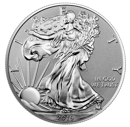 Pièce de une once Feuille d'érable en argent 2019 au fini épreuve numismatique modifié | Pièce de une once American Eagle en argent 2019 au fini épreuve numismatique inverse accentué |