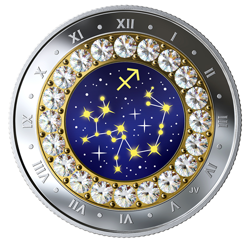 Pièce en argent pur rehaussée de cristaux Swarovskiᴹᴰ – Signes du zodiaque : Sagittaire