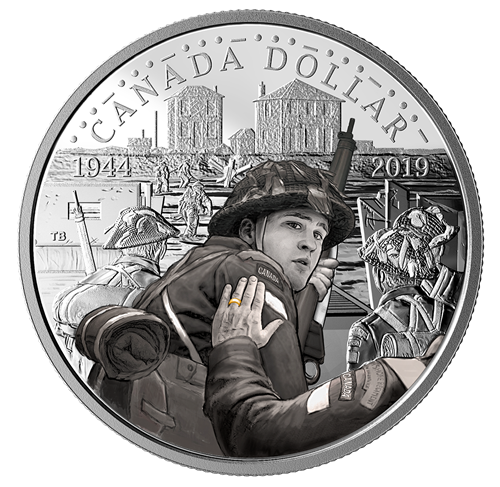 - L’HISTOIRE VUE D’UN AUTRE ANGLE. Le dollar épreuve numismatique de 2019 souligne le 75e anniversaire du jour J en recréantun authentique moment immortalisé sur pellicule. Hommage à la bravoure, il présente l’événement historique du point de vue de ceux qui ont combattu pour prendre la plage, le 6 juin 1944.