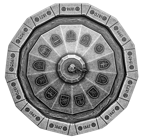 Jusqu'ici, le très haut relief nous avait permisde propulser la conception de pièce vers des sommets inégalés. Et maintenant, nous avons atteint une profondeur extraordinaire grâce à notre dernière merveille d'ingénierie : une réplique à 13 côtés (en forme de tridécagone) de la flamme du centenaire, sur la colline du Parlement, faisant la taille d'une pièce de monnaie. C'est la variation impressionnante du relief qui rend la reproduction si réaliste : au plus creux du bassin, l'épaisseur de la pièce est de seulement 1,51 millimètre, mais elle culmine à 5,05 millimètres au bout de la flamme gravée. Un fini antique donne à la pièce un aspect usé semblable à celui de la véritable fontaine en granite et en bronze érigée en symbole d'unité.