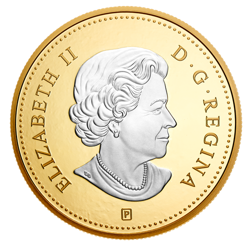 L'image des armoiries du Canada qui figure sur la pièce de 50 cents est l'un des sept motifs à faire le saut au format de 5 onces. Rehaussée d'un placage d'or inverse, la pièce fait partie de la série créée par la Monnaie royale canadienne pour rendre hommage à nos pièces decirculation d'hier et d'aujourd'hui.