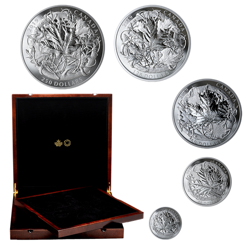 Ensemble de cinq pièces divisionnaires en argent pur - Collection Prestige : Érable canadien - Tirag