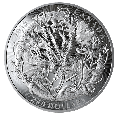 Les cinq pièces portent un motif unique, œuvre de l'artiste Steve Hepburn. Une branche d'érable (Acer) circulaire sert d'ancrage à un enchevêtrement de brindilles poussant les unes autour des autres. Savamment entrelacées, celles-ci représentent l'épanouissement de l'érable au fil des saisons, de l'apparition printanière des bourgeons à la chute automnale des feuilles. Chaque pièce présente le millésime « 2019 », la mention « CANADA » et sa valeur nominale, le tout gravé le long du cordon. L'avers est à l'effigie de Sa Majesté la reine Elizabeth II, selon Susanna Blunt.