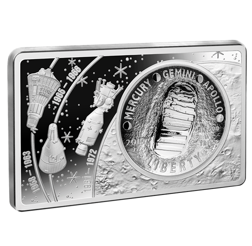 Parmi les nombreuses réalisations technologiques et politiques des Américains, peu rayonnent comme cellesaccomplies durant la grande course à l’espace des années 1960. Après Mercury et Gemini, le programme spatial Apollo a atteint son zénith avec la mission Apollo 11, où les astronautes Neil Armstrong et Edwin « Buzz » Aldrin ont atterri sur la Lune pour ensuiterevenir sains et saufs sur Terre, avec le pilote dumodule de commande, Michael Collins. Pour soulignerle 50e anniversaire de la conquête de la Lune, la United States Mint lance un programme de sept pièces commémoratives qui plaira aussi bien aux numismates qu’aux passionnés de la technologie et de l’espace.