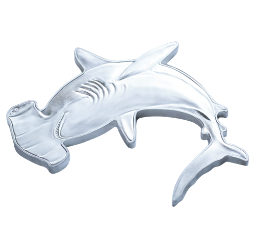 Depuis toujours, la prédation des requins est synonyme de peur et de plaisir à travers le monde. La sériede pièces Prédateurs des profondeurs, conçue par le groupe MTB Metals, met en lumière trois des plus grands chasseurs sous-marins. Deuxième de la série, la pièce Grand requin-marteau fait suite à la pièce Grand requin blanc, également en forme de requin et ayant cours légal.