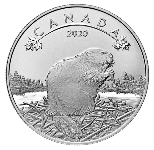 Œuvre de l'artiste canadienne June Steube, le motif au revers fait resplendir toute la majesté d'un emblème officiel incarnant l'histoire, le territoire et l'esprit sauvage du Canada. Le vaillant castor (Castor canadensis) s'y tient, paisible, sur un amoncellement de branches rongées, aux abords de ce qu'on imagine être l'un des nombreux lacs ou ruisseaux du pays. Le revers comporte également la mention incurvée « CANADA », le millésime « 2020 » et des feuilles d'érable ornementales. L'avers est à l'effigie de Sa Majesté la reine Elizabeth II, selon Susanna Blunt.