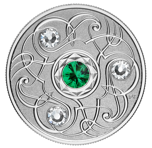 Le motif au revers, œuvre de l'artiste Pandora Young, est à la croisée de l'art et des mathématiques. On y retrouve un motif répétitif stylisé, disposé selon les lois du système sénaire. L'œuvre gravée, inspirée de la triskèle celtique, incorpore trois cristaux SwarovskiMD incolores et célèbre la pierre de naissance du mois de mai (l'émeraude) par un quatrième cristal SwarovskiMD incrusté au centre. L'avers est à l'effigie de Sa Majesté la reine Elizabeth II, selon Susanna Blunt.