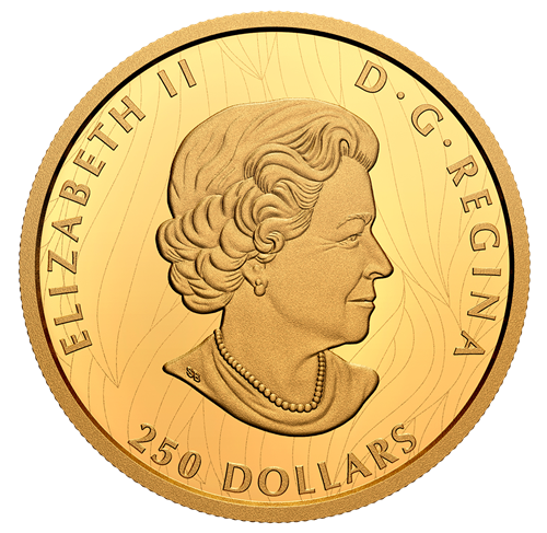 Œuvre de l'artiste canadien Neil Hamelin, lemotif au revers présente le noble pygargue à tête blanche, vu de trois quarts, qui dirige son regard perçant et son bec crochu distinctifs vers le champ de la pièce à sa droite. Les plumes de l'impressionnant rapace semblent ébouriffées, leur forme et texture étant grandement accentuées par le relief exceptionnellement haut de la pièce, ce qui confère une profondeur inégalée au motif. Cet effet saisissant est amplifié par le fini épreuve numismatique, qui donne à la gravure et à son remarquable relief une toile de fond miroitante parfaitement lisse. L'avers est à l'effigie de Sa Majesté la reine Elizabeth II, selon Susanna Blunt.