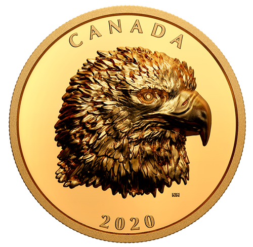 - LE PLUS GRAND RAPACE AU CANADA A FIÈRE ALLURE. Tous seront fiers de posséder cette pièce à relief exceptionnel qui rend un vibrant hommage au plus impressionnant représentant dela faune canadienne, le pygargue à tête blanche.