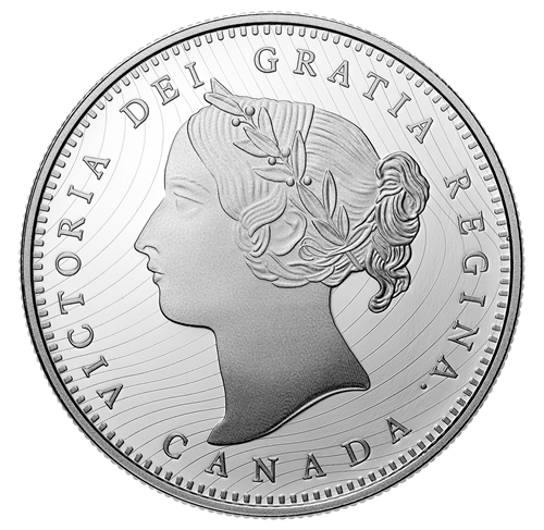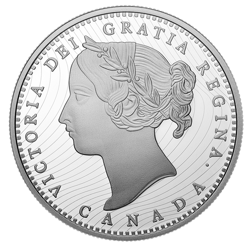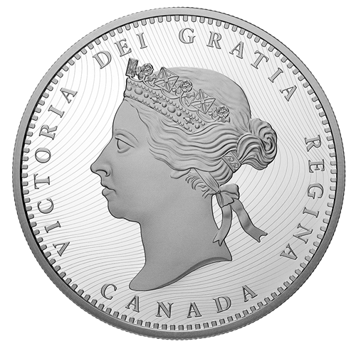 - Pour frapper ses nouvelles pièces de 5 cents et de 10cents, le Dominion du Canada a pu réutiliser les outils prototypes des pièces de 1858 de la Province duCanada. Mais pour celles de 25 cents et de 50 cents, dont la valeur nominale n’existait pas encore au pays, il a dû créer de nouveaux outils. Les deux pièces présentaient au revers un motif semblable à celuides pièces de 5 cents et de 10 cents, mais portaient à l’avers une nouvelle effigie : le portrait « à diadème » de la jeune reine Victoria, selon Leonard C. Wyon.