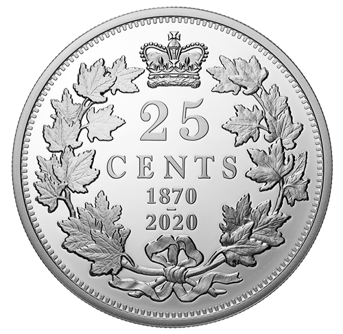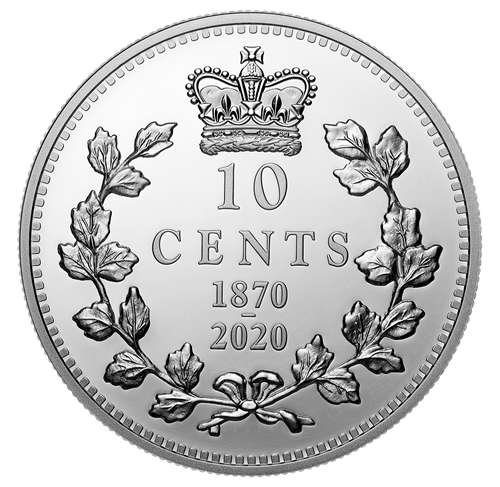 - DEUX DATES AU REVERS! La double date au revers (« 1870-2020 ») souligne un anniversairemarquant : le 150e des premières pièces nationales du Canada.