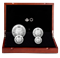Les pièces sont encapsulées individuellement et réunies dans un boîtier à double coque orné du logo de la Monnaie royale canadienne. Le boîtier est assortid’une boîte protectrice noire.