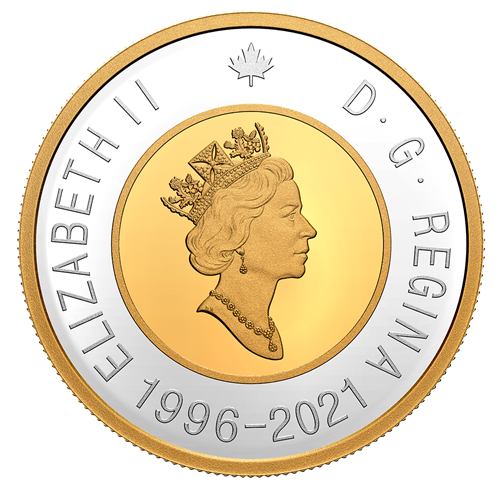 - Un regard sur 1996! Faite d’argent pur à 99,99 %, la pièce de collection présente à l’avers et au revers les motifs de la pièce de 2 $ lancée en 1996. Elle diffère toutefois de l’originale par son diamètre légèrement plus grand (38 mm) et sa double date (« 1996-2021 »), qui souligne le 25e anniversaire de cette célèbre pièce en 2021.