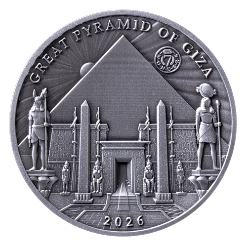 Découvrez la majesté de l’Antiquité avec la troisième pièce de la série Sept merveilles du monde, immortalisant dans l’argent pur la grande pyramide de Gizeh, la seule merveille du monde encore existante.