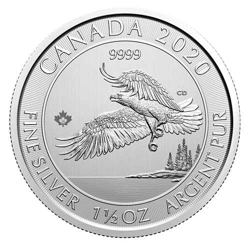 Pièce de 8 $ de 1,25 oz en argent pur à 99,99 % 2020 - Pygargue à tête blanche (pièce d'investissement)